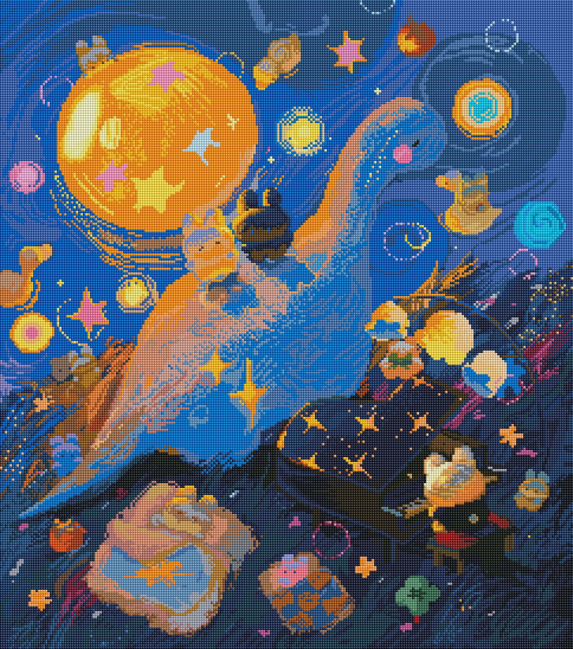 This charming composition blends fantasy, friendship, and childhood innocence in a stunning starry-night style. Perfect for animal lovers, dreamers, and anyone who adores cute, imaginative art.