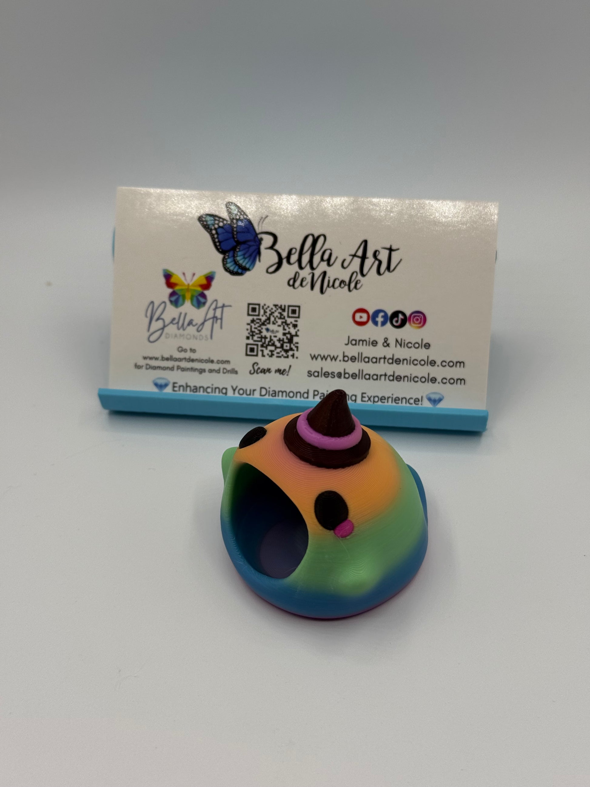 Note: Colors may vary based on available filament at the time of order. "Rainbow" colors print randomly. If you have any concerns, contact us—we’re here to help! Original Hungry Ghost design by Layers In Green.