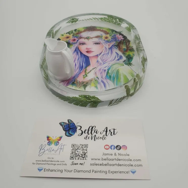 Our resin trays are unique because we have a magnet included inside the tray. Trays come with a Pitcher Trash Drill Container. You can also use your tray as a way to hold back your cover while working on your diamond painting by adding your own magnet underneath the tray.